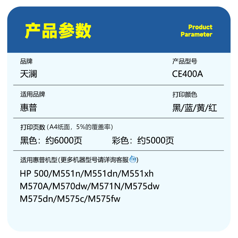 m570dn M551dn m575dn打印机墨盒M551n M570dw HP507A粉盒碳粉 天澜适用惠普CE400A硒鼓M551 m575cm575f 500
