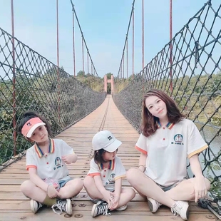 T恤母子polo衫 洋气卡通儿童纯棉短袖 一家三口男女宝宝新款 亲子装