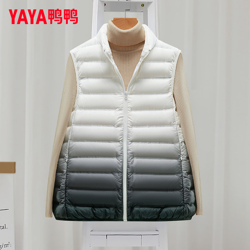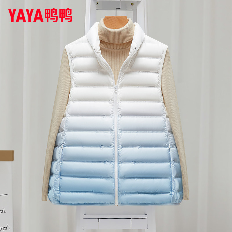 鸭鸭羽绒2023春季 马甲女渐变立领宽松直筒内搭外穿背心HP 新款