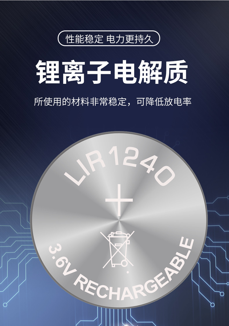充电锂电池LIR1240纽扣扣式 可充电二次电池1243蓝牙TWS无线耳机用