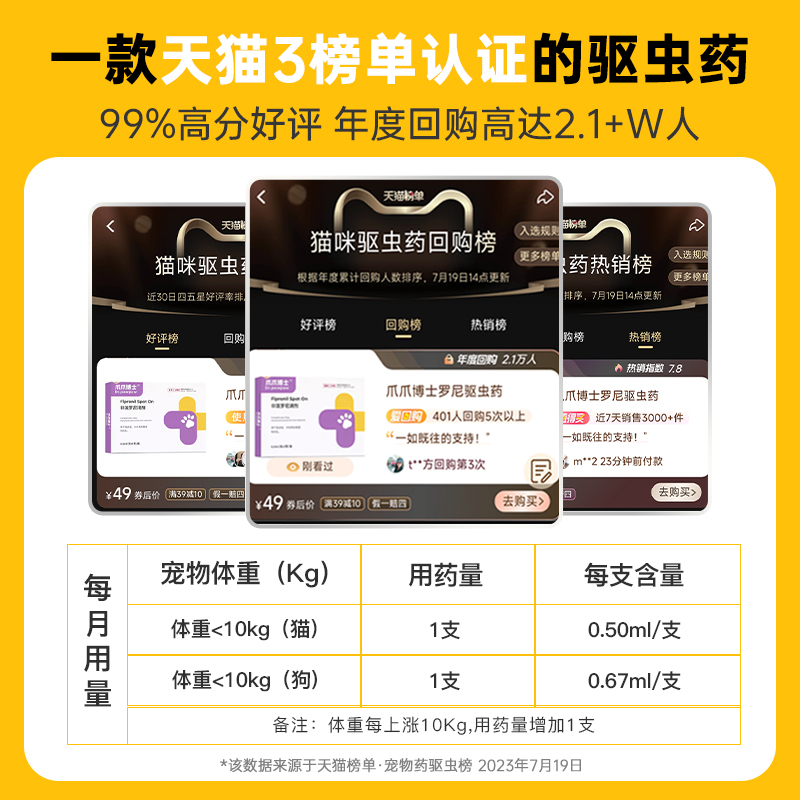 爪爪博士猫咪驱虫药体内外一体宠物狗狗幼猫跳蚤虱子非泼罗尼滴剂