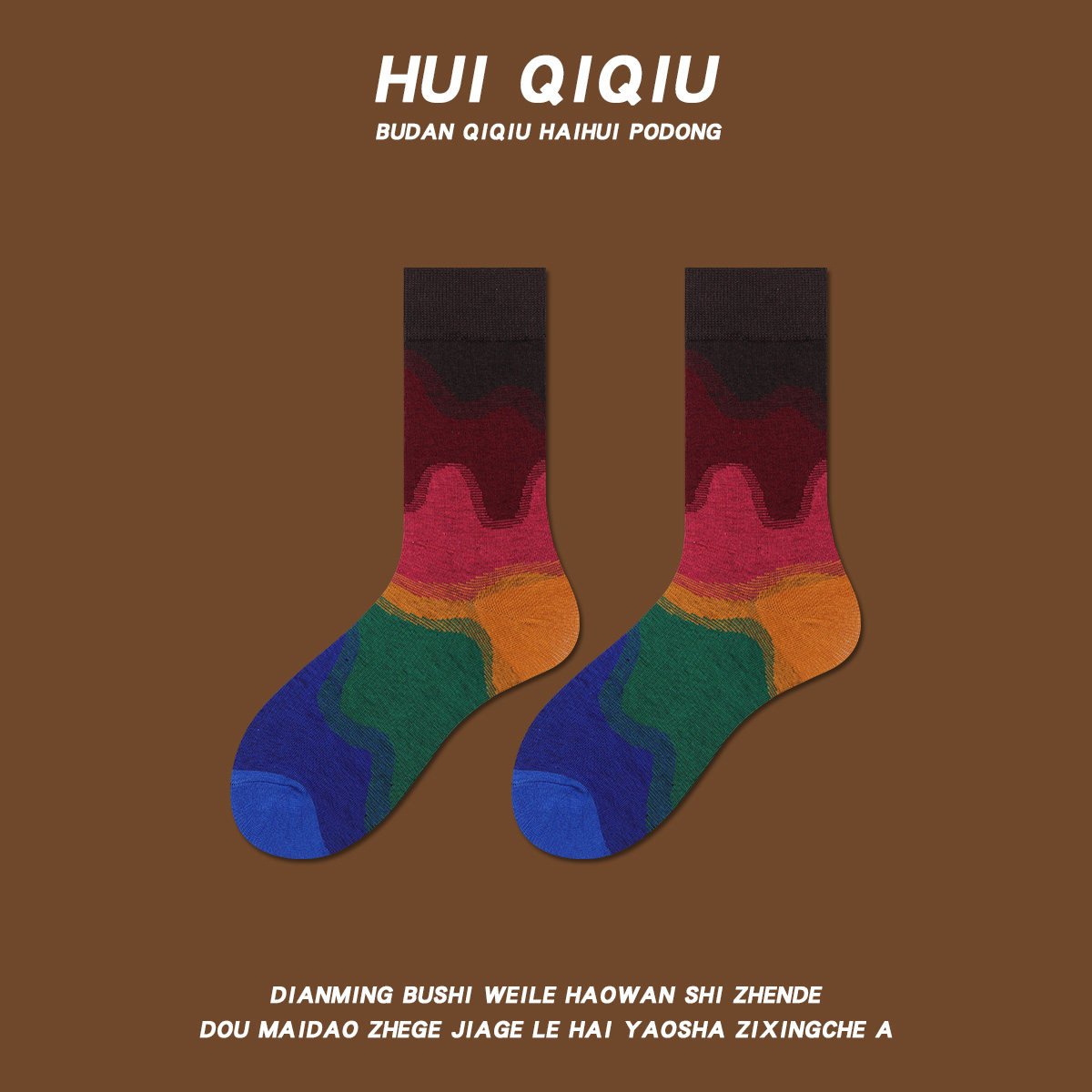 会起球 小众潮袜男女情侣中筒袜韩国网红渐变拼色ins潮袜 袜子