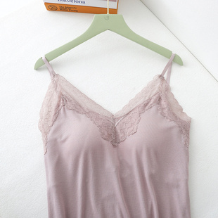 夏季 莫代尔 吊带背心女上衣带胸垫可调肩带宽松睡衣居家螺纹薄款