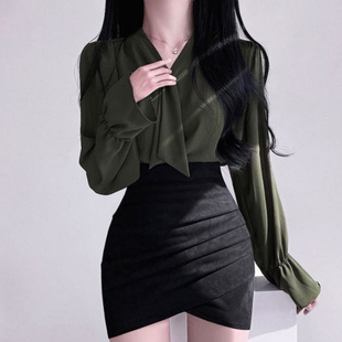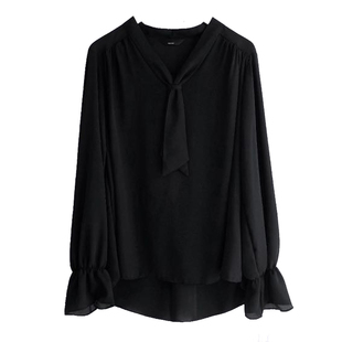 百搭打底长袖 白色雪纺衬衫 飘带设计感上衣时尚 女2023韩版 衬衣 春季