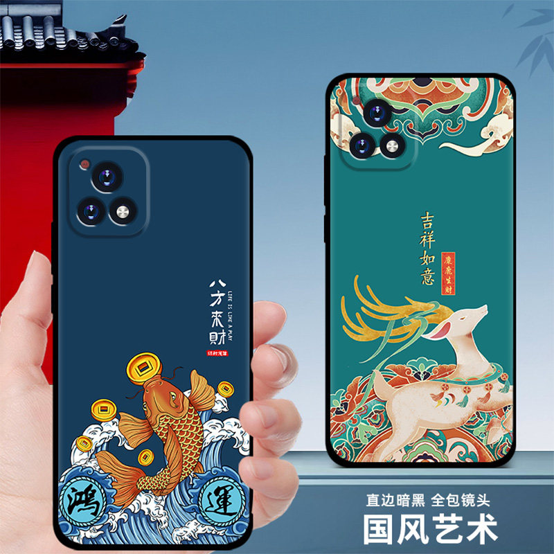适用vivoy52s手机壳y53s硅胶女款 龙年y5s防摔磨砂软壳黑色全包送钢化膜 y51s手机保护套y52s男中国风y50新款