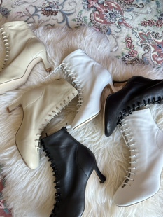TRACY 弹力羊皮复古绑带6cm裸靴 CHU