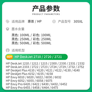 2320 6020打印机黑彩色6420 6010 适用惠普305墨盒墨水2710 4120 2721 6012 4122连供喷加墨XLDeskJet hp2720