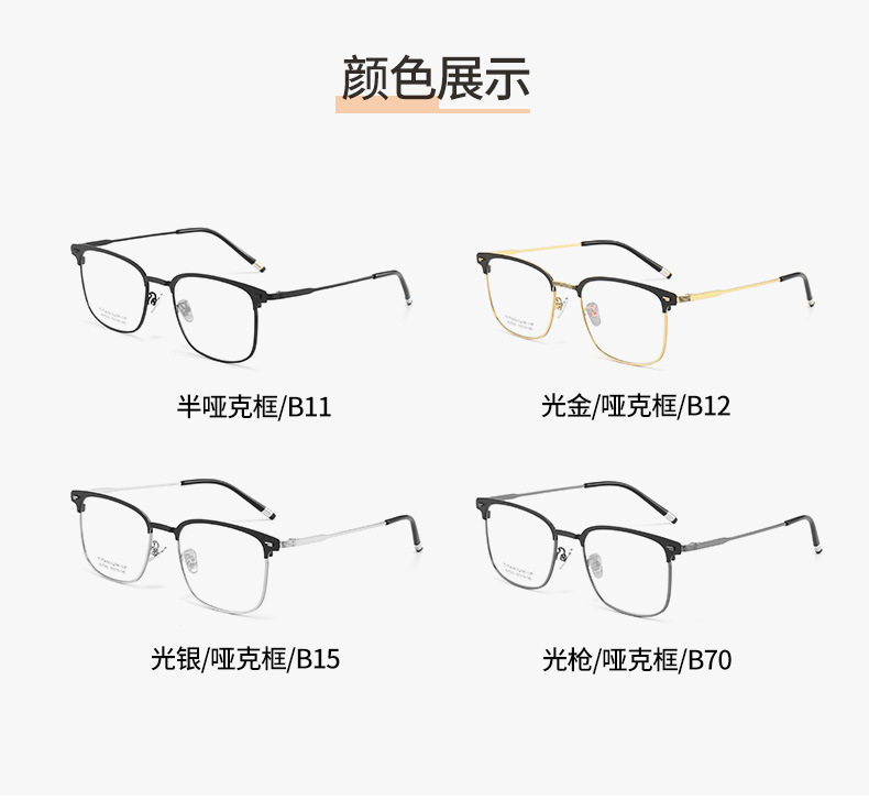 纯钛超轻眉形男士 商务休闲近视眼镜光学眼镜方形眼镜框BJ7200