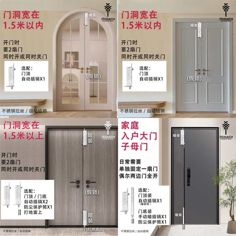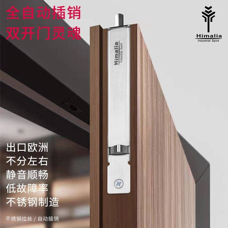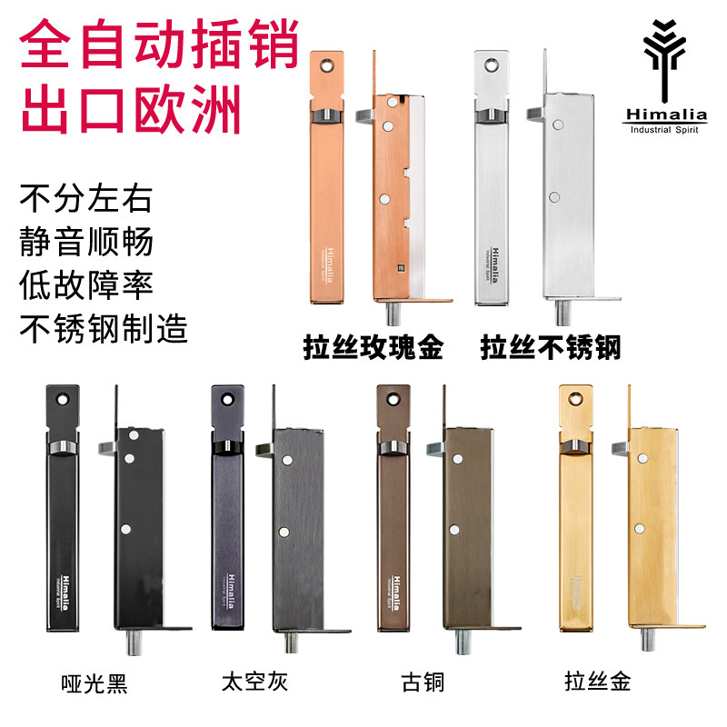 304不锈钢自动暗插销天地木门栓双开门暗藏插销弹簧自动回弹插销