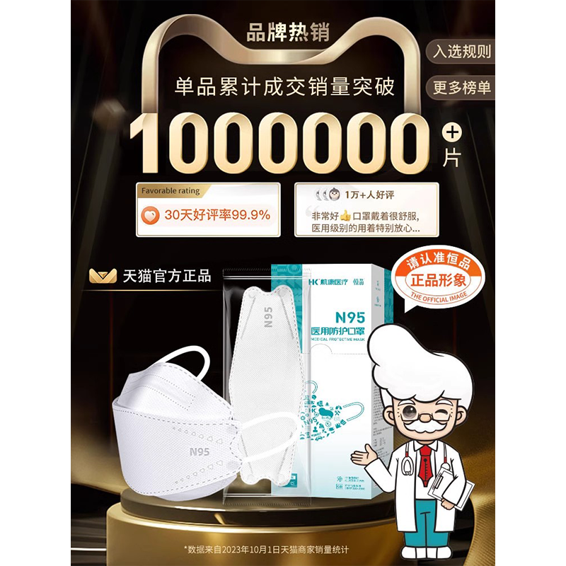 100只医用口罩一次性医疗官方正品 灭菌级成人独立 旗舰店单独包装