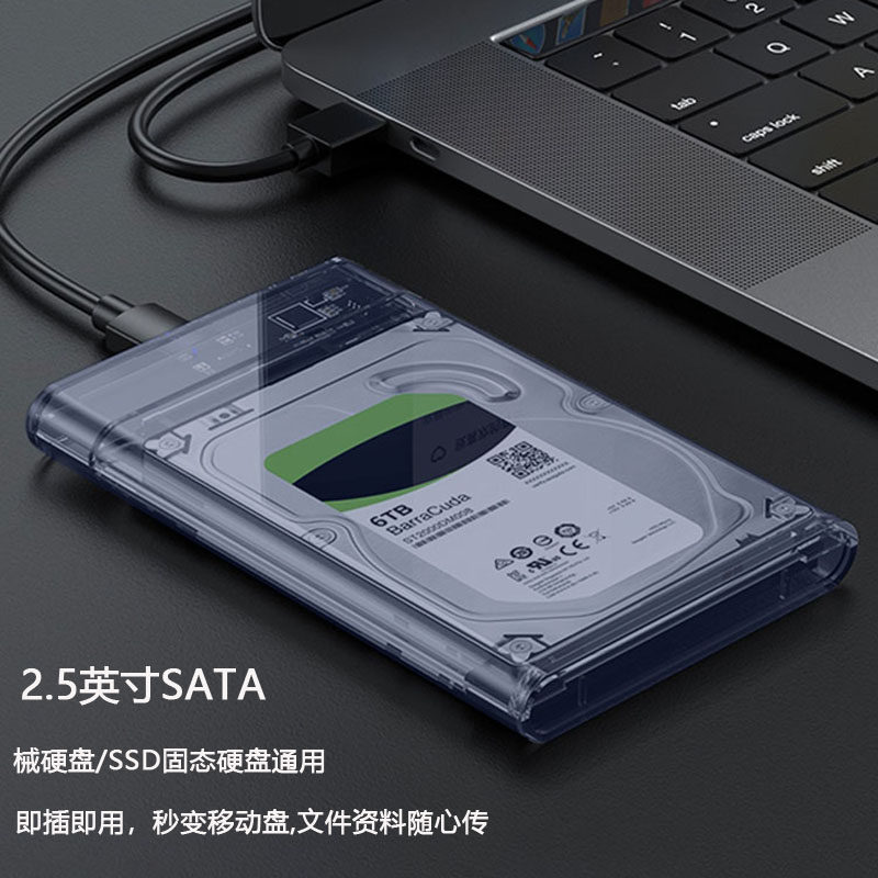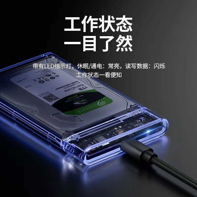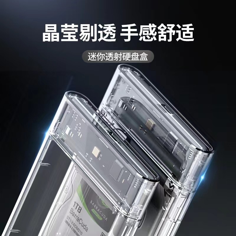 2.5英寸透明硬盘盒USB3.1转Type 固态硬盘外接盒 C笔记本电脑机械