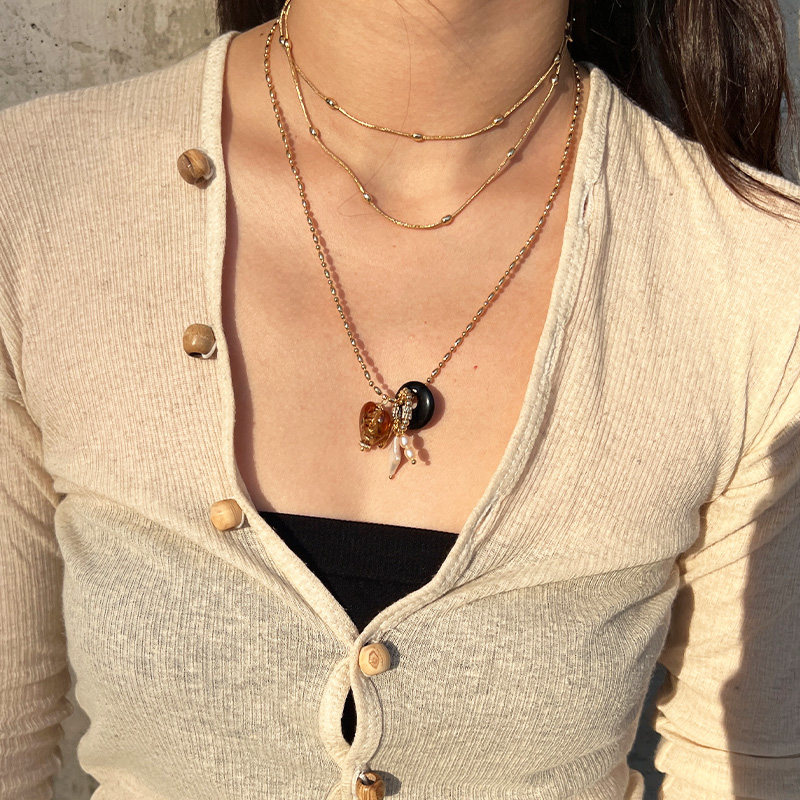 LAZY 美拉德珍珠毛衣链 CIRCLES情人米珠项链女原创设计复古法式