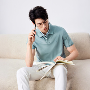 夏短袖 男士 金利来polo衫 T恤翻领凉感桑蚕丝高级感上衣 云冰川