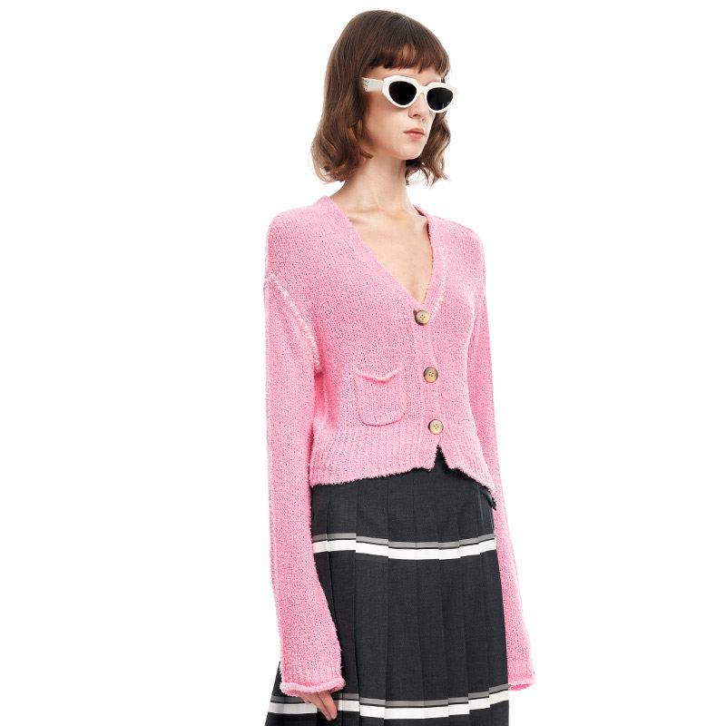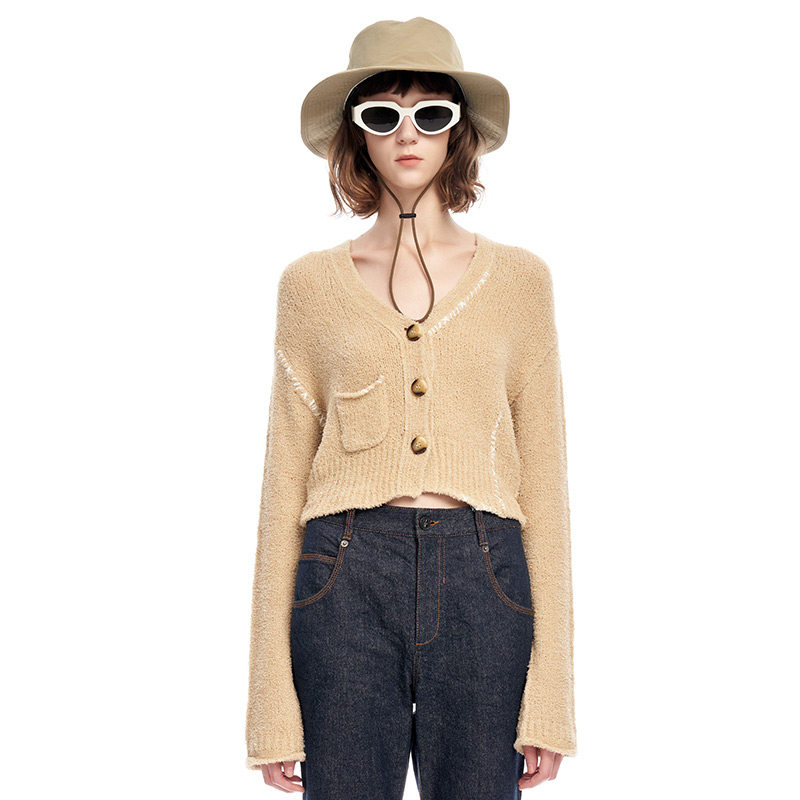 长睫毛纱V领针织衫 VVNK 新品 PLUS春季 女J310264618A JANE