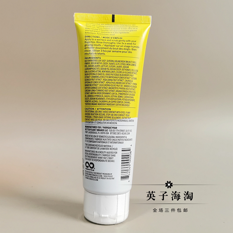 ACURE提亮洁面去死皮角质黑头脸面部毛孔清洁绿泥海藻磨砂膏118mL
