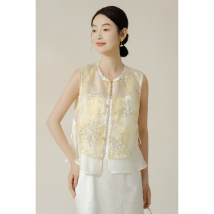 重工珠片绣背心提花无袖 新中式 复古马甲叠穿上衣 蜜璃 SHIBAI拾白