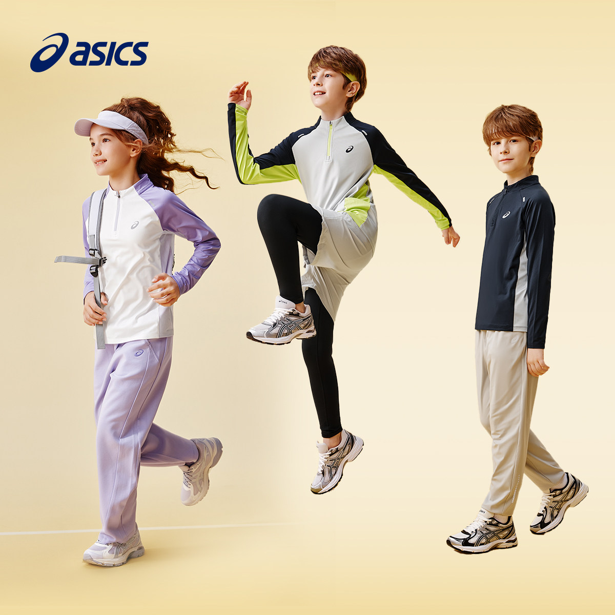 商场同款 新款 ASICS 秋季 拼色针织T恤吸湿速干 亚瑟士童装