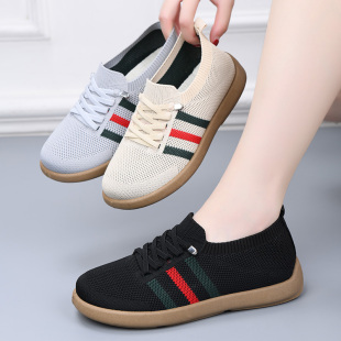 百搭轻便一脚蹬懒人单鞋 飞织透气软底妈妈鞋 女新款 春秋老北京布鞋