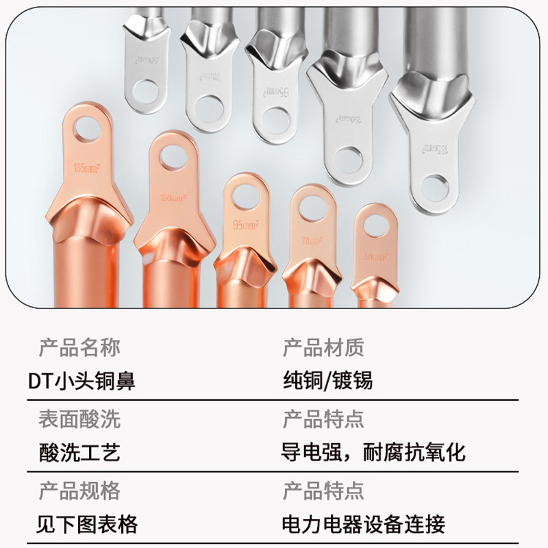120 150 240平方塑壳窄头接线端子 小头DT铜鼻子35 185