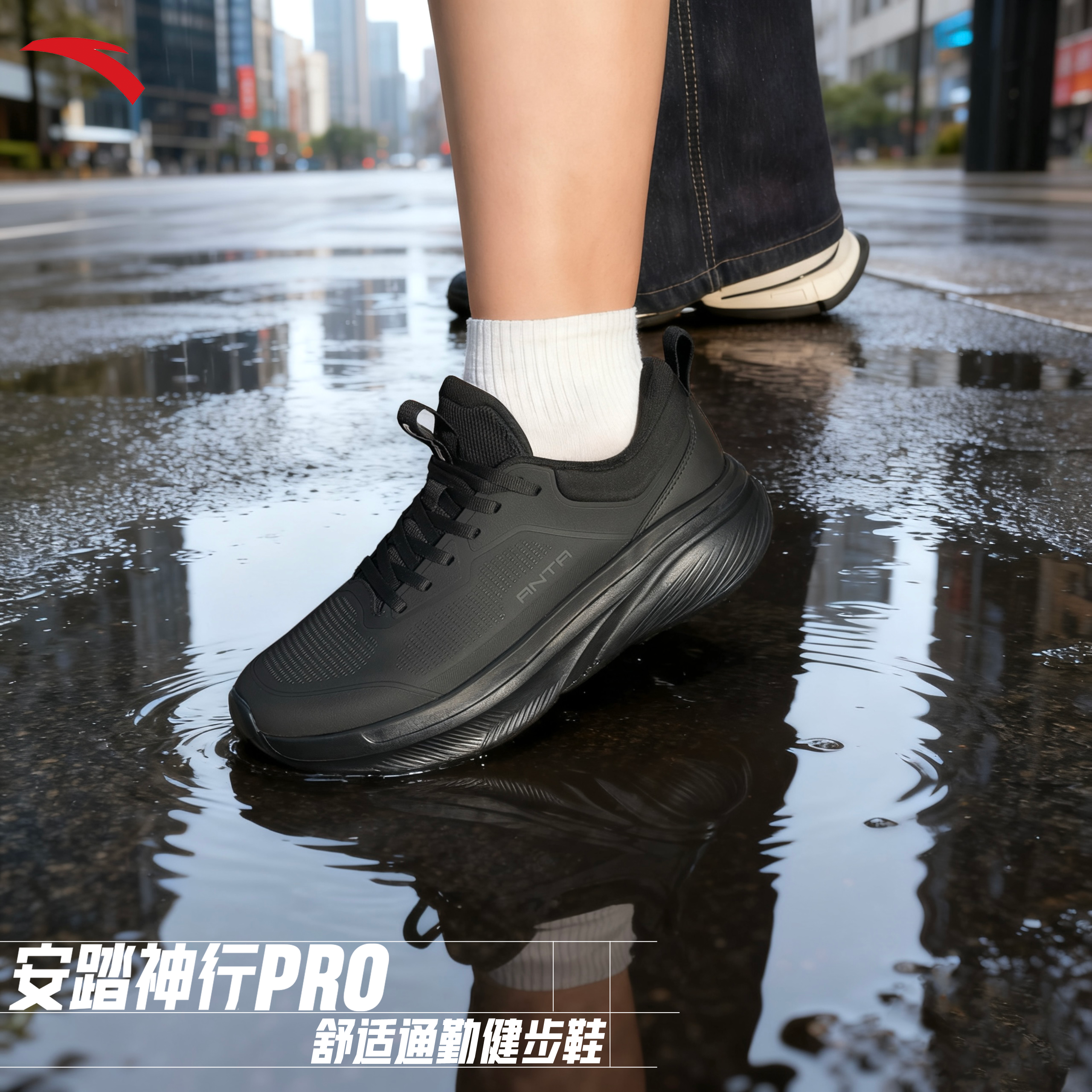跑鞋 黑武士网面软底防滑减震休闲鞋 皮面 秋冬季 安踏神行Pro运动鞋