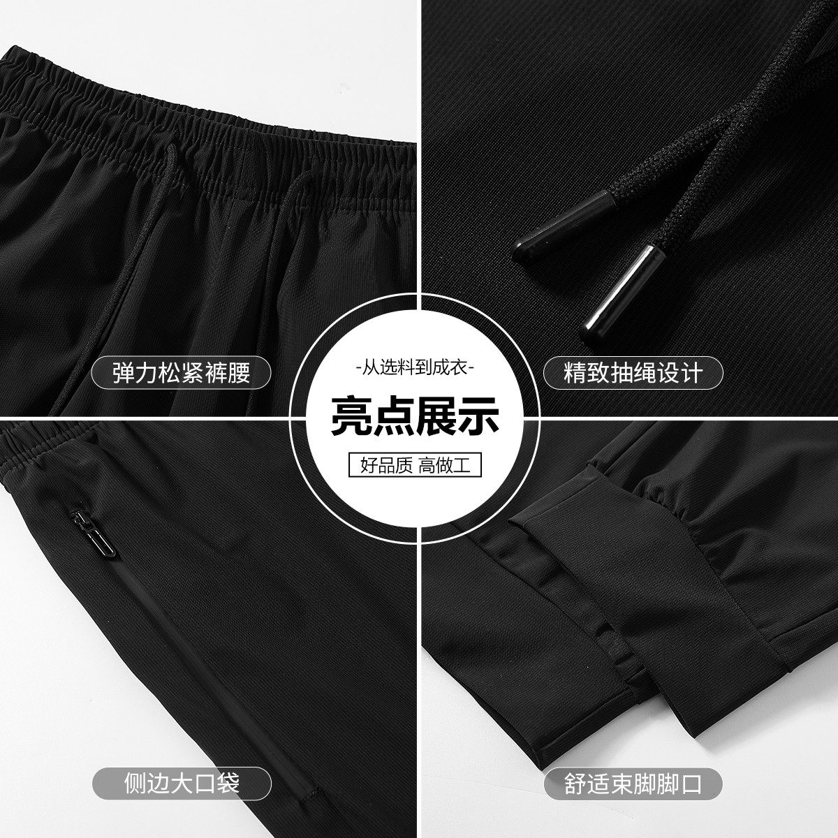 冰皮裸感裤 子男式 夏季 宽松冰丝休闲裤 垂感空调束脚运动裤 薄款