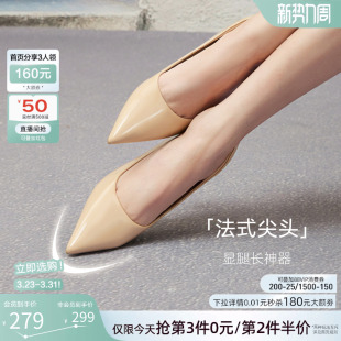 尖头女鞋 裸色细跟高跟鞋 CU711CQ5 浅口单鞋 百思图春秋商场新款