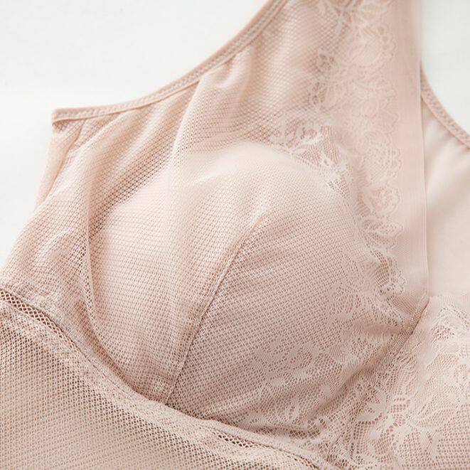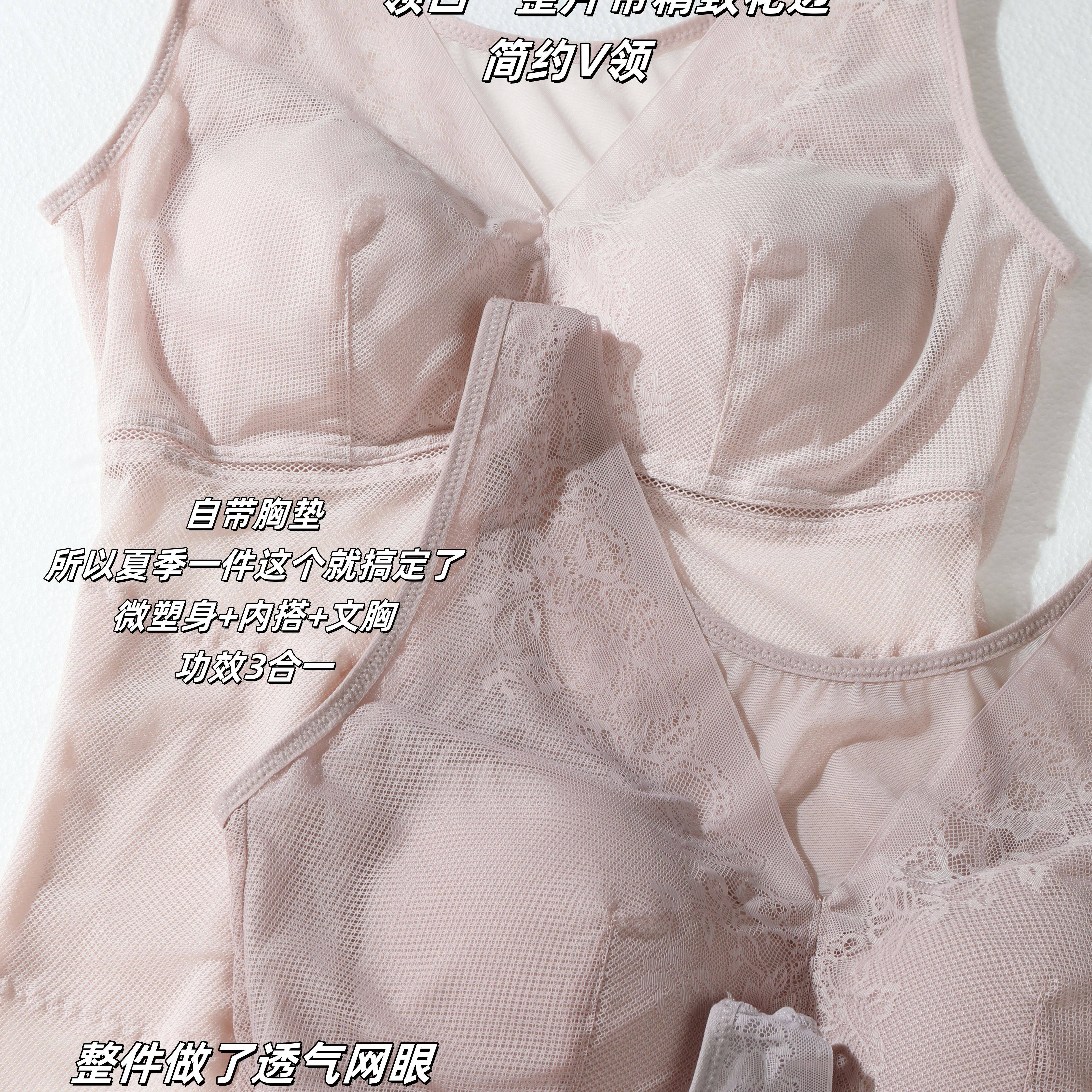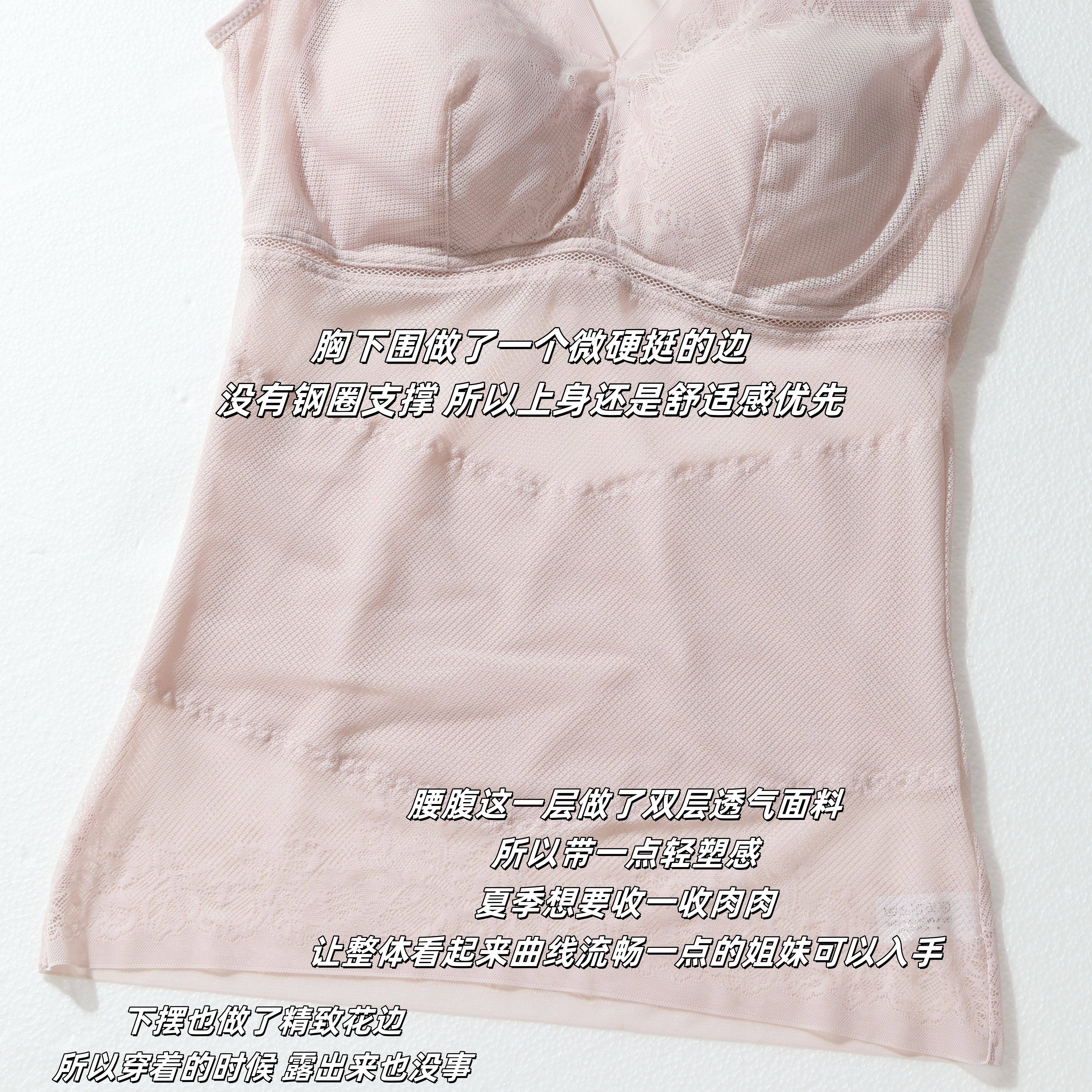 下摆带精致花边 V领口 带胸垫4色优雅色系可选 带透气网眼