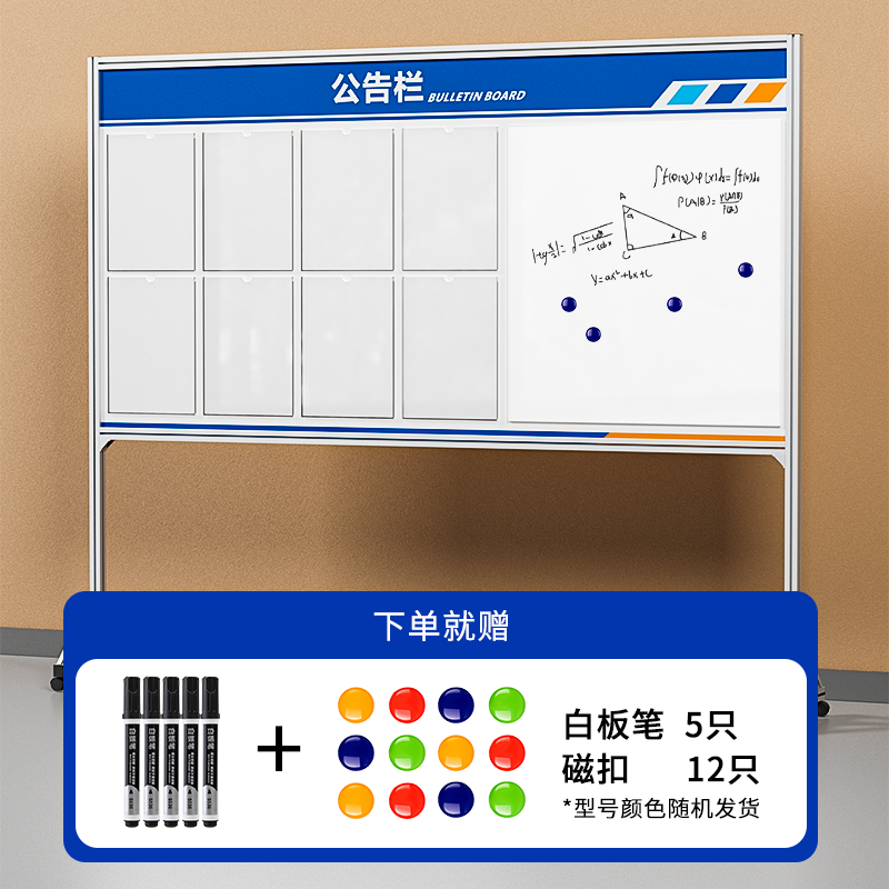 公告栏展示板宣传栏公示栏室内铝合金展示架白板磁吸版 可擦写定制
