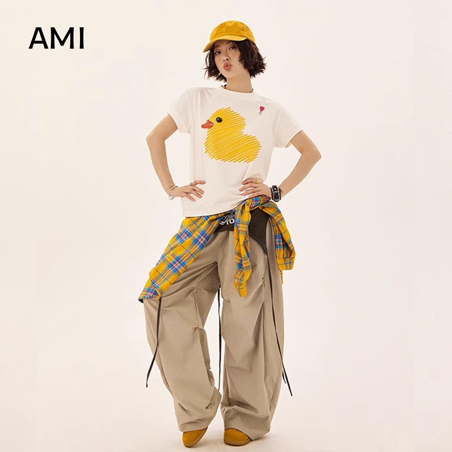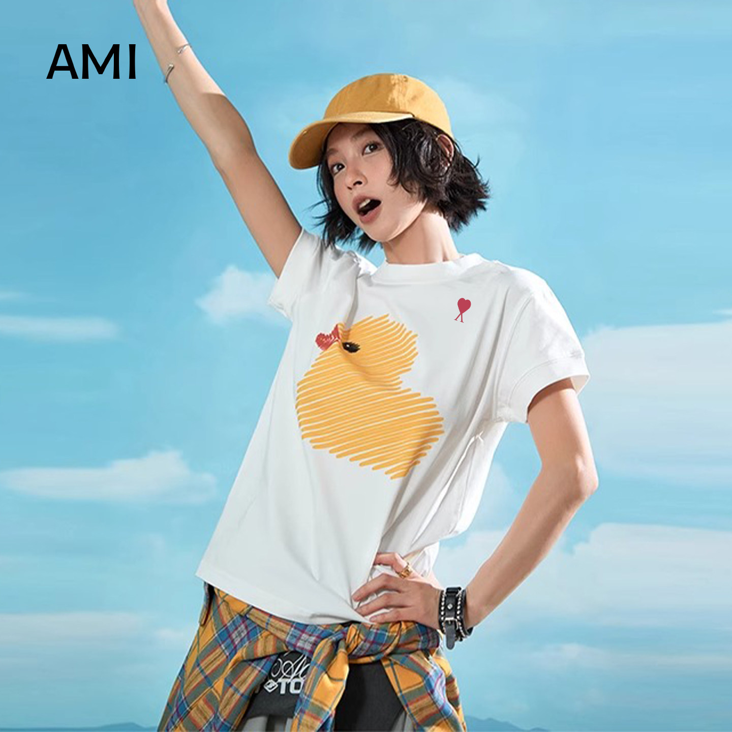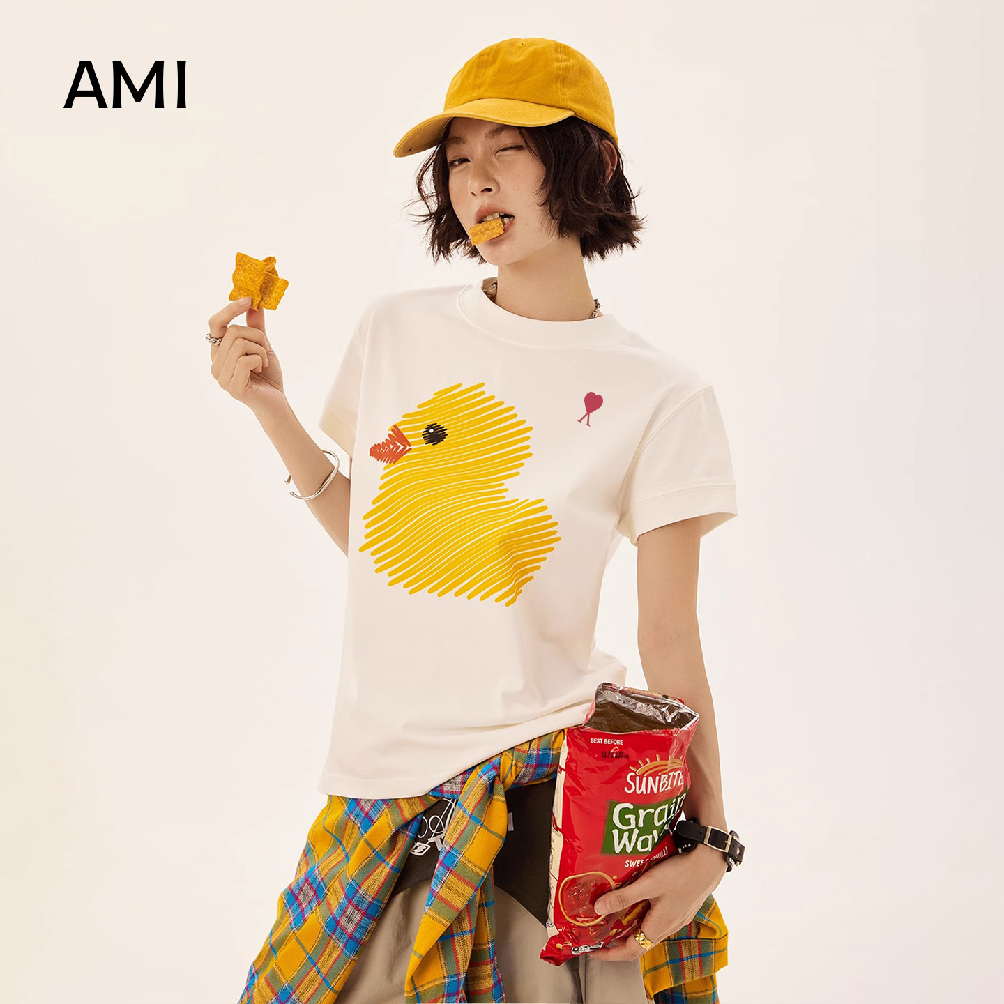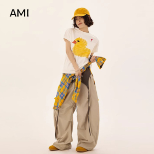 修身 AMI官方2026美式 正品 t恤女夏季 正肩超好看 涂鸦小黄鸭印花短袖