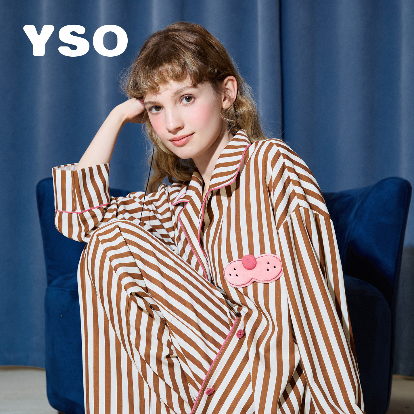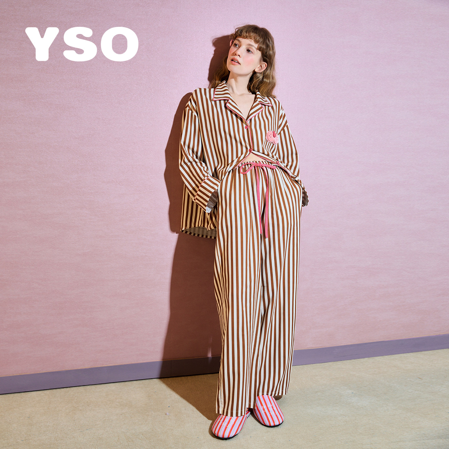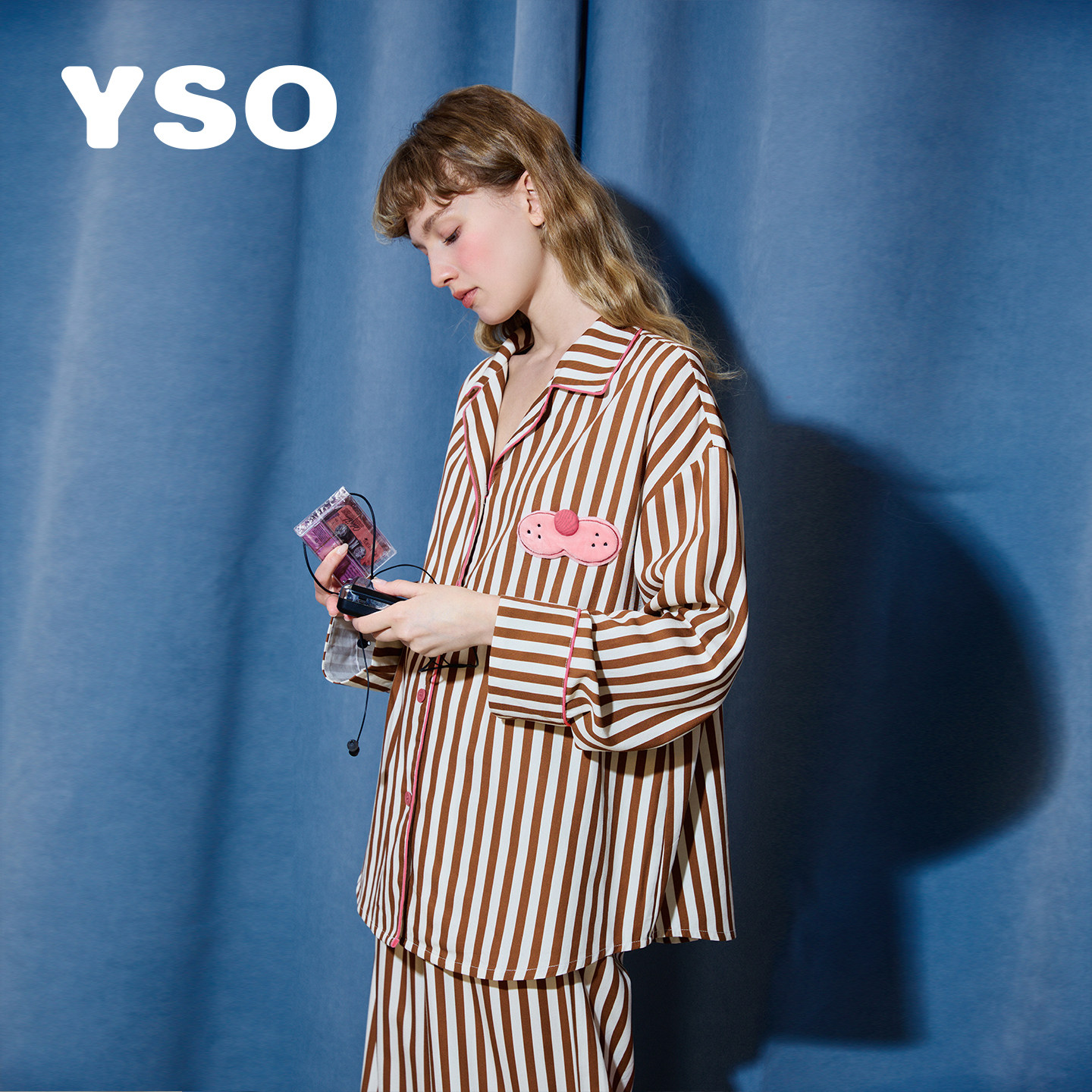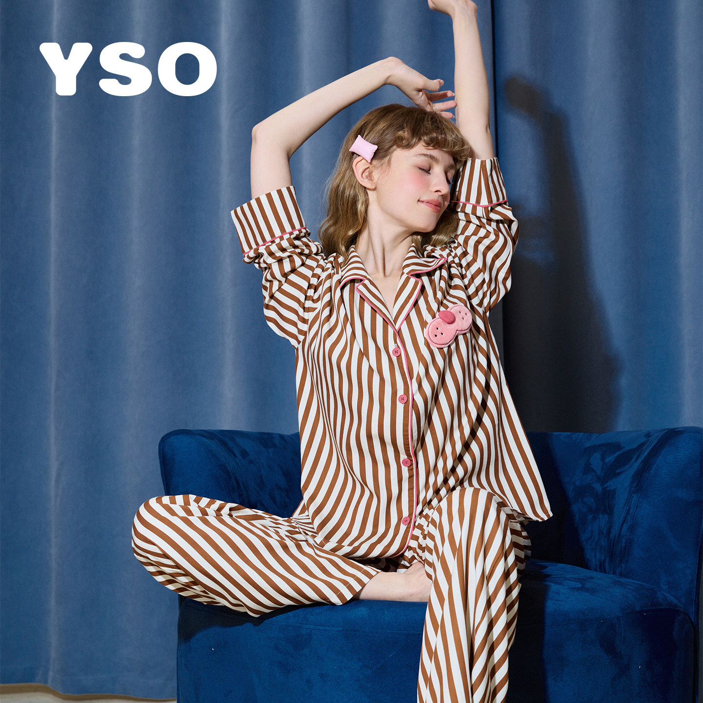 酷猫系列 休闲简约家居服套装 睡衣女春秋条纹衬衫 长裤 长袖 yso