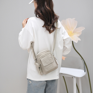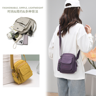 2025新款 百搭单肩斜挎包女轻便防水尼龙布小方包多口袋手机包 时尚