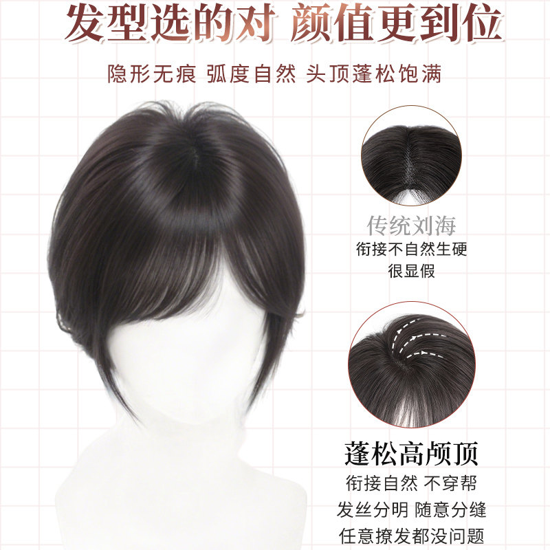 三七分斜刘海假发女片头顶补发仿真发蓬松高颅顶遮发缝无痕假刘海