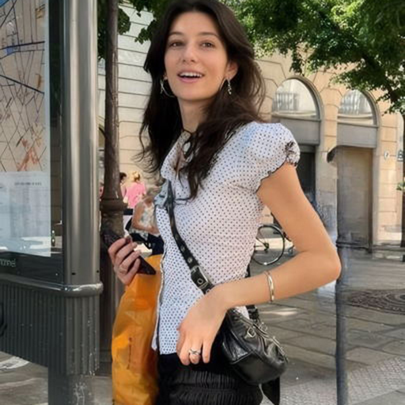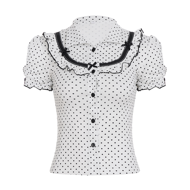 上衣 显瘦泡泡袖 SWEETOWN法式 miu系少女感波点拼色花边蝴蝶结衬衫