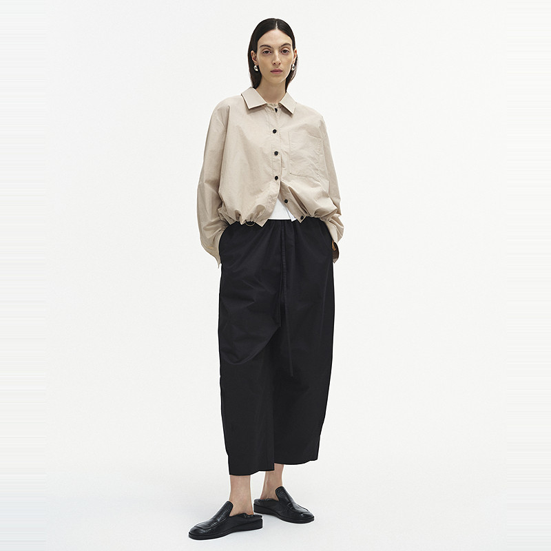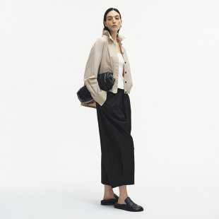 Marisfrolg玛丝菲尔2025秋新款 上衣 杏子灰宽松H型抽绳休闲衬衫