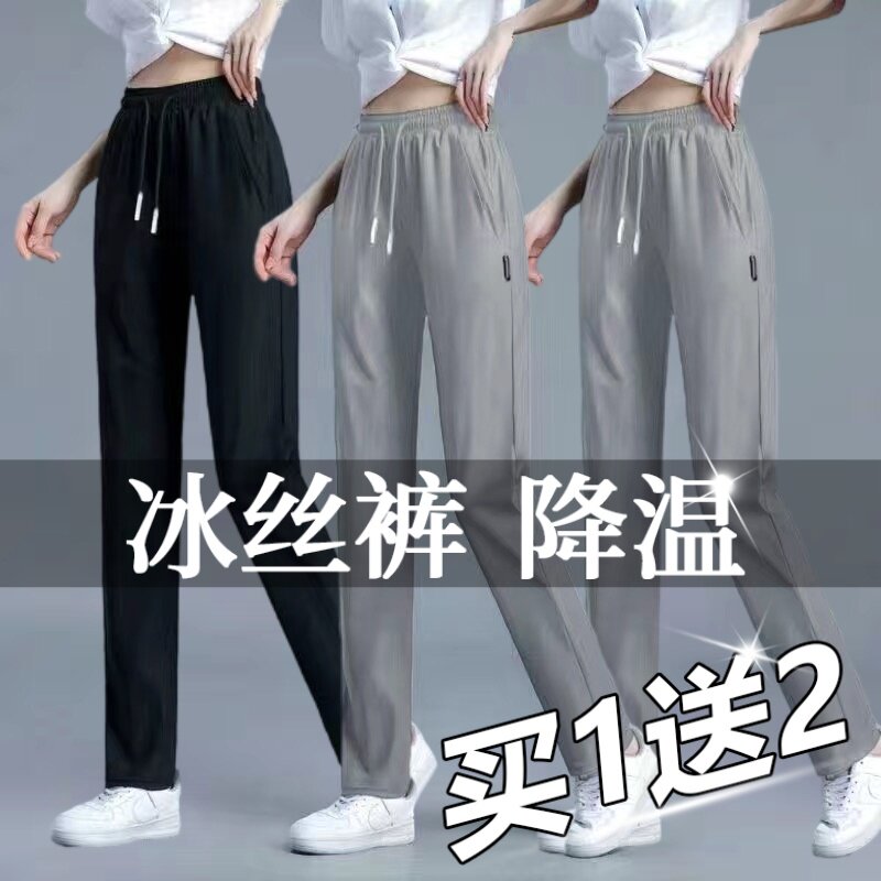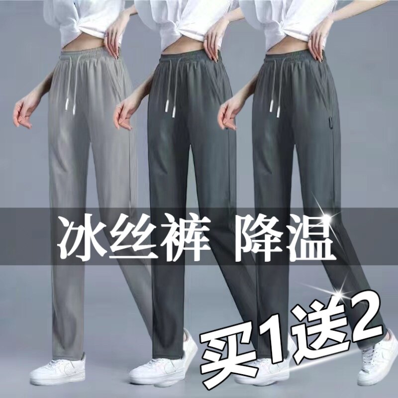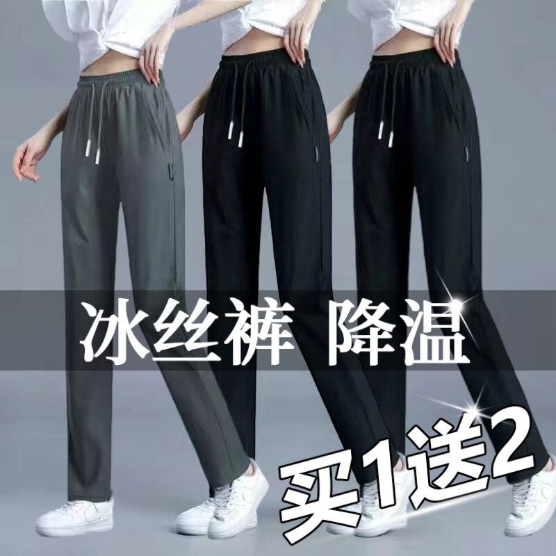 冰丝休闲直筒中腰弹力耐穿耐磨便宜9.9显瘦长裤 薄款 子女夏秋季 裤