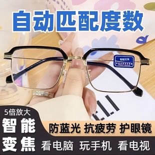 新款 智能变焦老花镜自动调节疲劳远近两用高清防蓝光眼镜镜片年轻