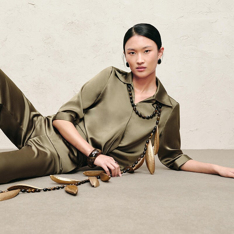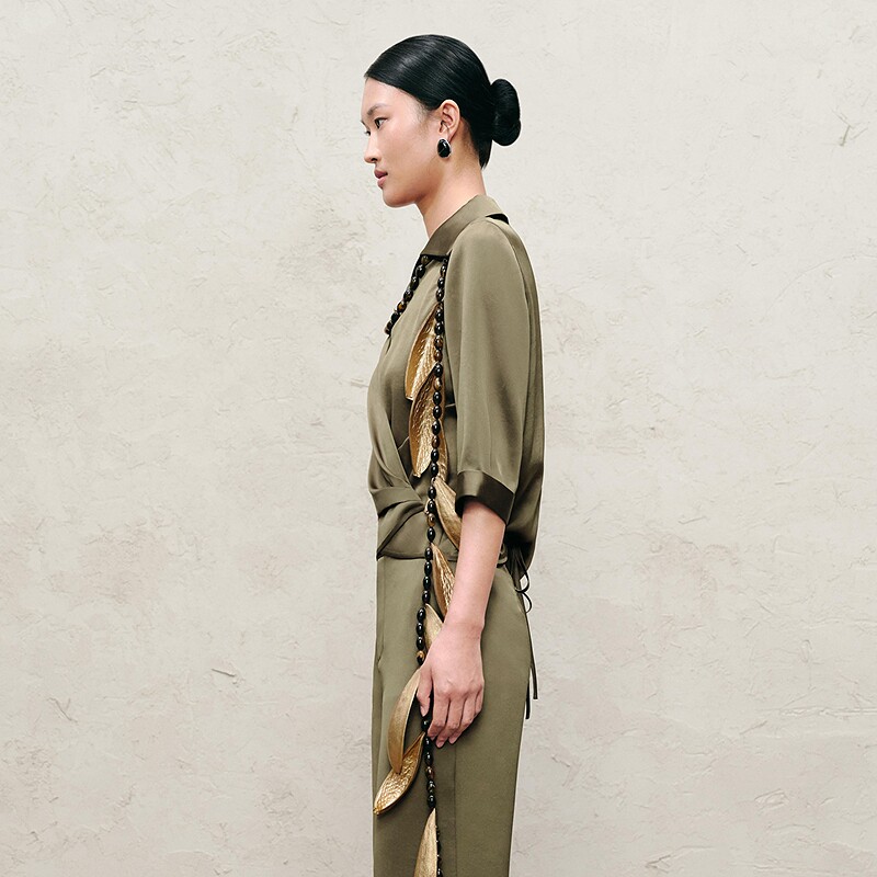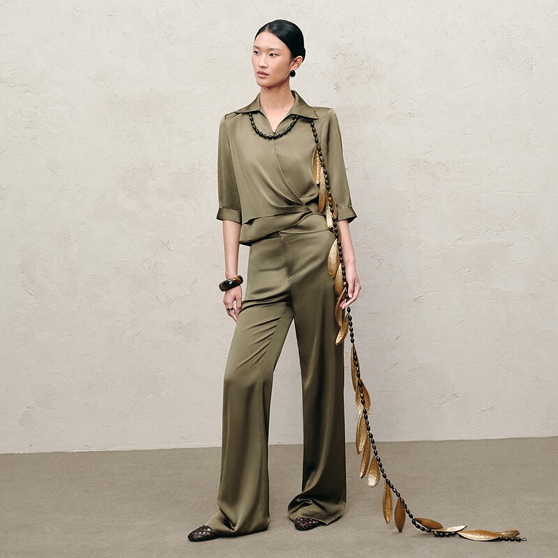 IMM尹默春三醋酸面料光泽感气质收腰立领衬衫 上衣女