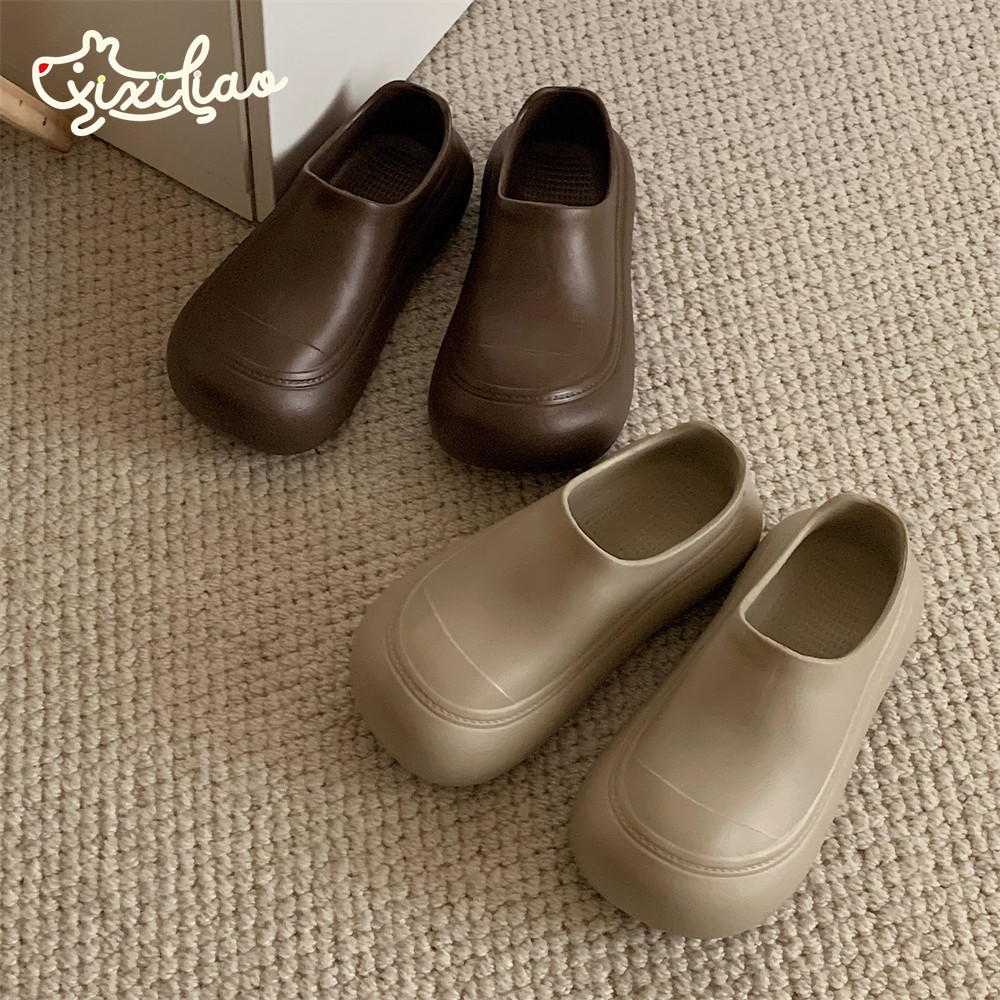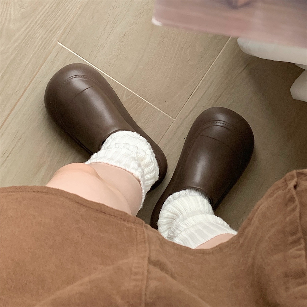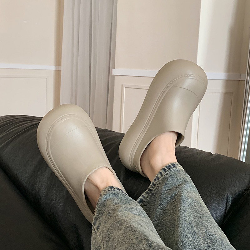 防滑外穿短筒厚底懒人一脚蹬包头半拖鞋 防水大头雨鞋 森女春秋时尚