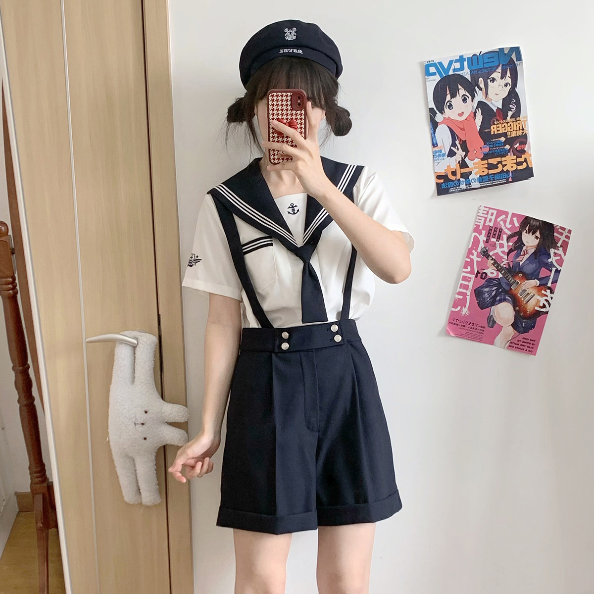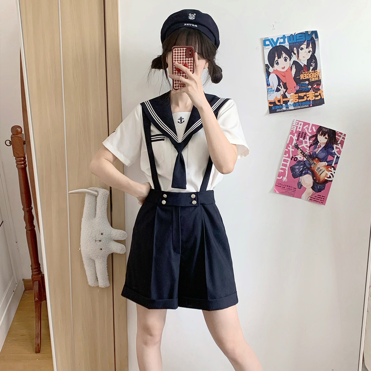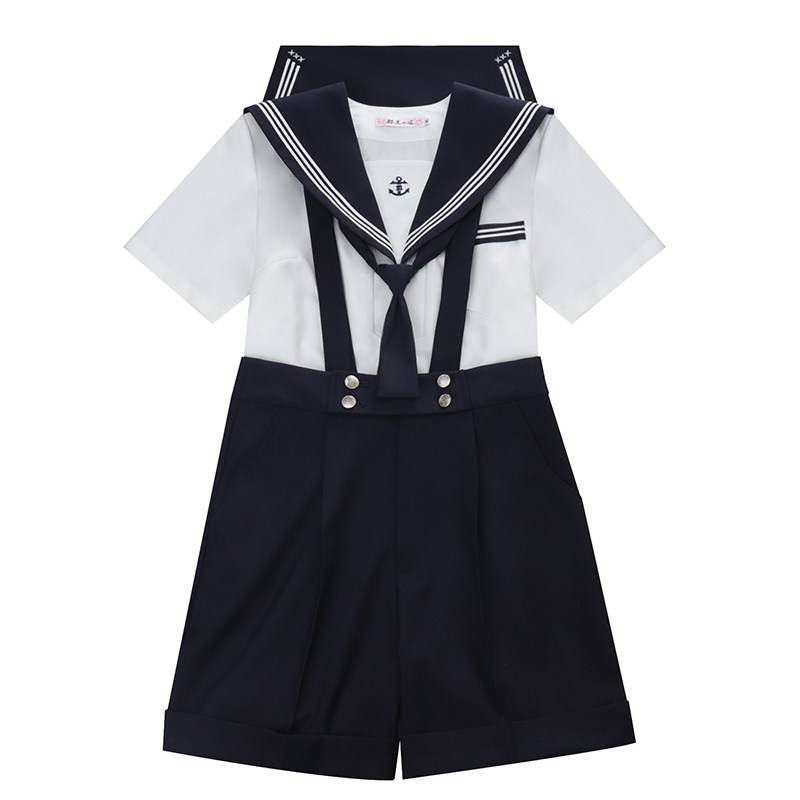 花绀白三本水手服套装 绀色背带短西裤 蔚蓝誓约 樱花家族jk制服