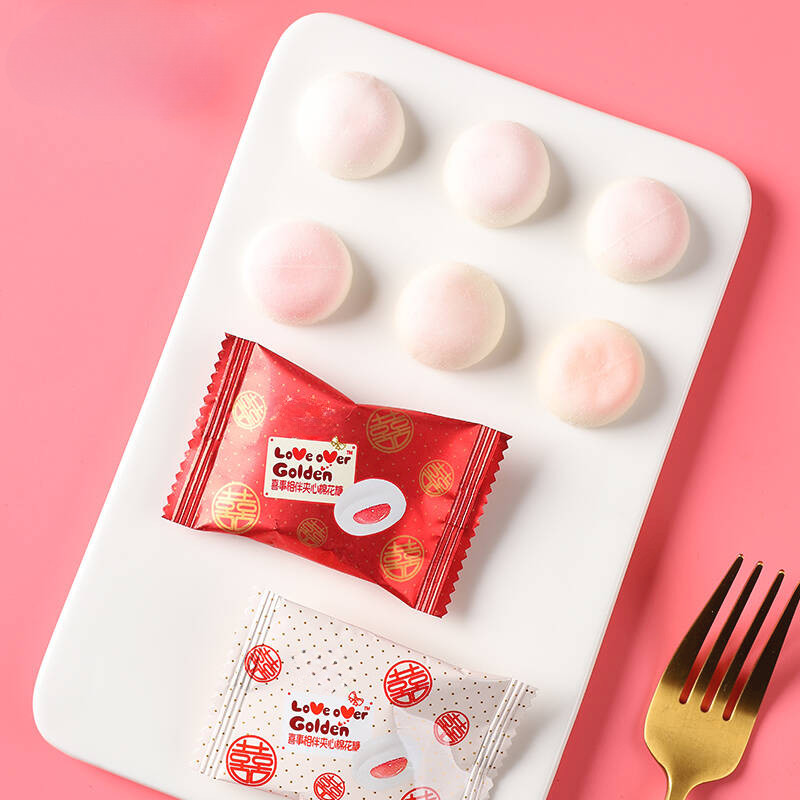 徐福记白桃味喜糖棉花糖500g订结婚庆宝宝满月专用喜糖果官方正品