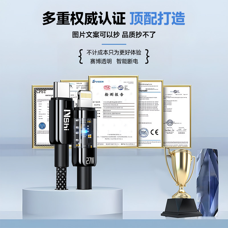 自动断电 YUSHEDA快充数据线适用苹果iPhone14充电线13手机12pro充电器线XR车载xsmax闪充ipad平板加长2米11