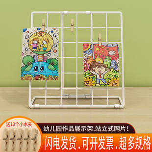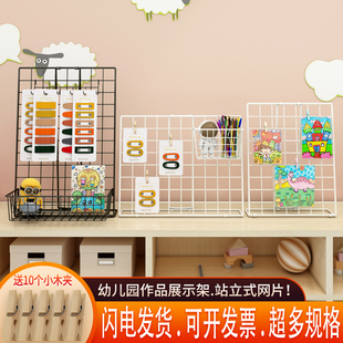 网格架展示架幼儿园美工区作品展示架铁丝网置物架桌面饰品挂件架