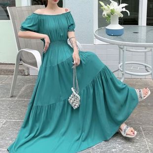 法式 一字肩连衣裙女秋款 收腰显瘦裙子 黑色小众气质性感长袖 ousph