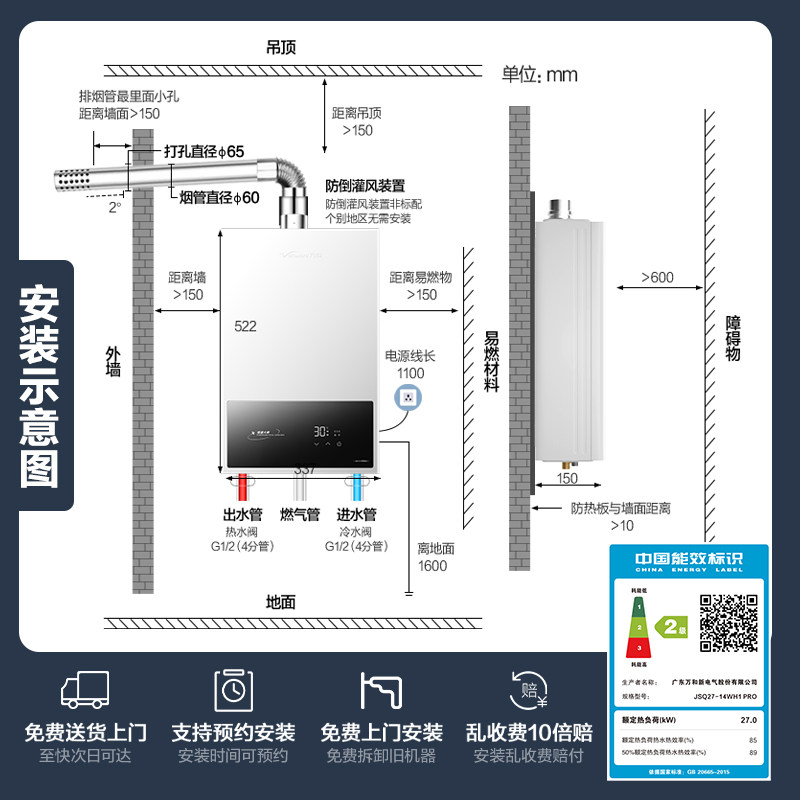 政府补贴万家乐安睡洗S9燃气热水器16升一级恒温节能增压静音天然
