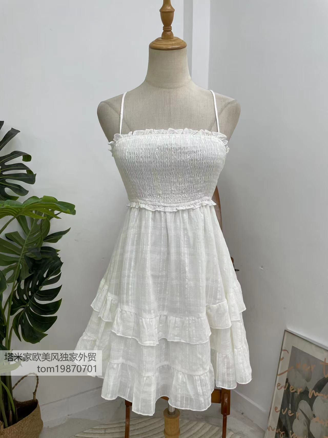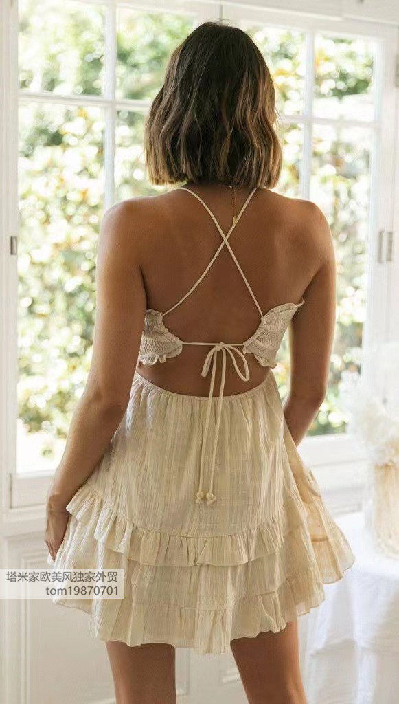 塔米家 澳单度假风木耳边吊带露背蛋糕连衣裙
