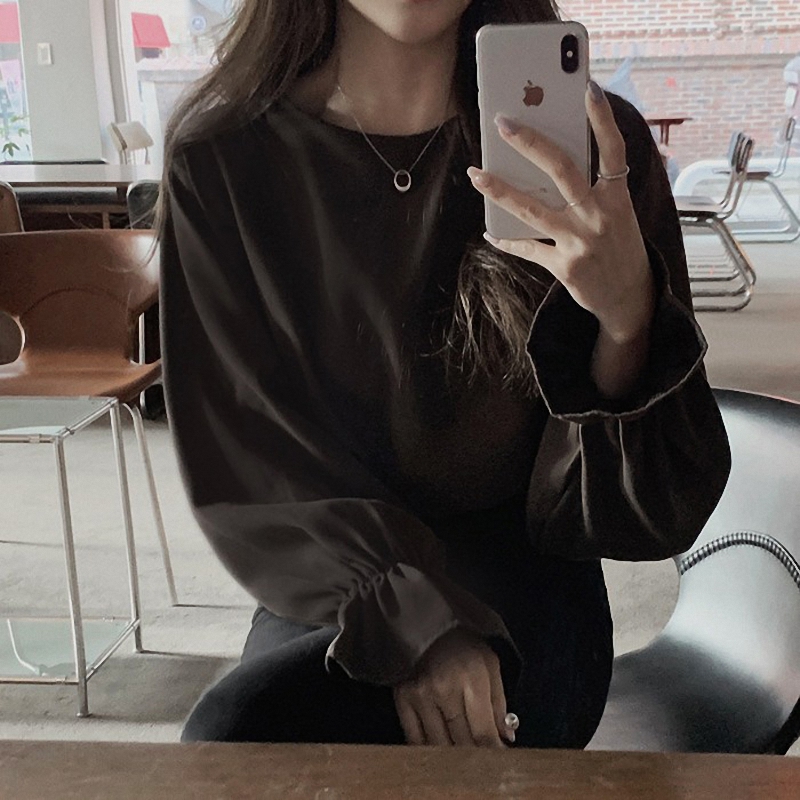 衬衫 发设计感小众简约气质上衣宽松百搭套头喇叭袖 批新款 秋冬女装
