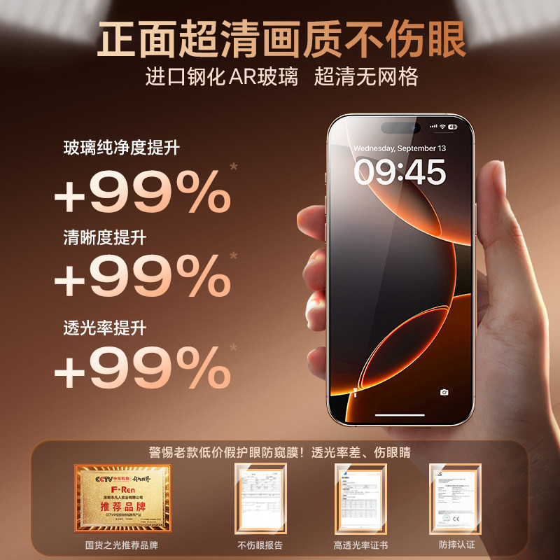 16promaxAR增透钢化膜苹果16手机膜15Pro新款 闪魔适用iphone17 14贴膜神器13高清12全屏11保护 超瓷晶防爆