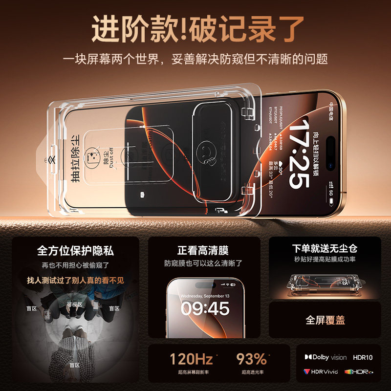 贴膜侠适用苹果15Promax钢化膜iPhone17手机膜16pro防偷窥手机膜13 秒贴贴膜Air 12康宁14无尘仓plus防尘新款