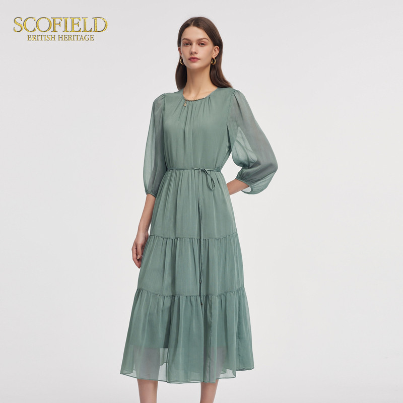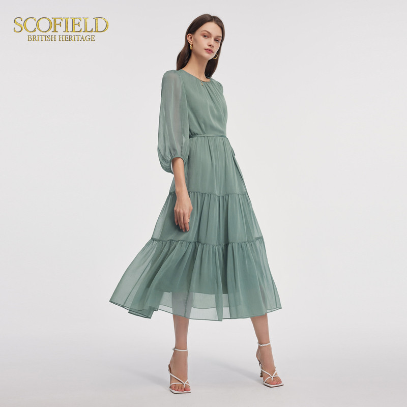 裙子 轻盈飘逸长裙灵动薄荷绿连衣裙夏季 Scofield女装 七分袖