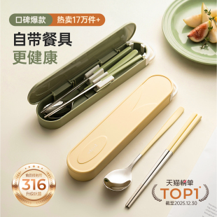 onlycook 筷子勺子个人专用盒 学生便携餐具304不锈钢儿童筷勺套装